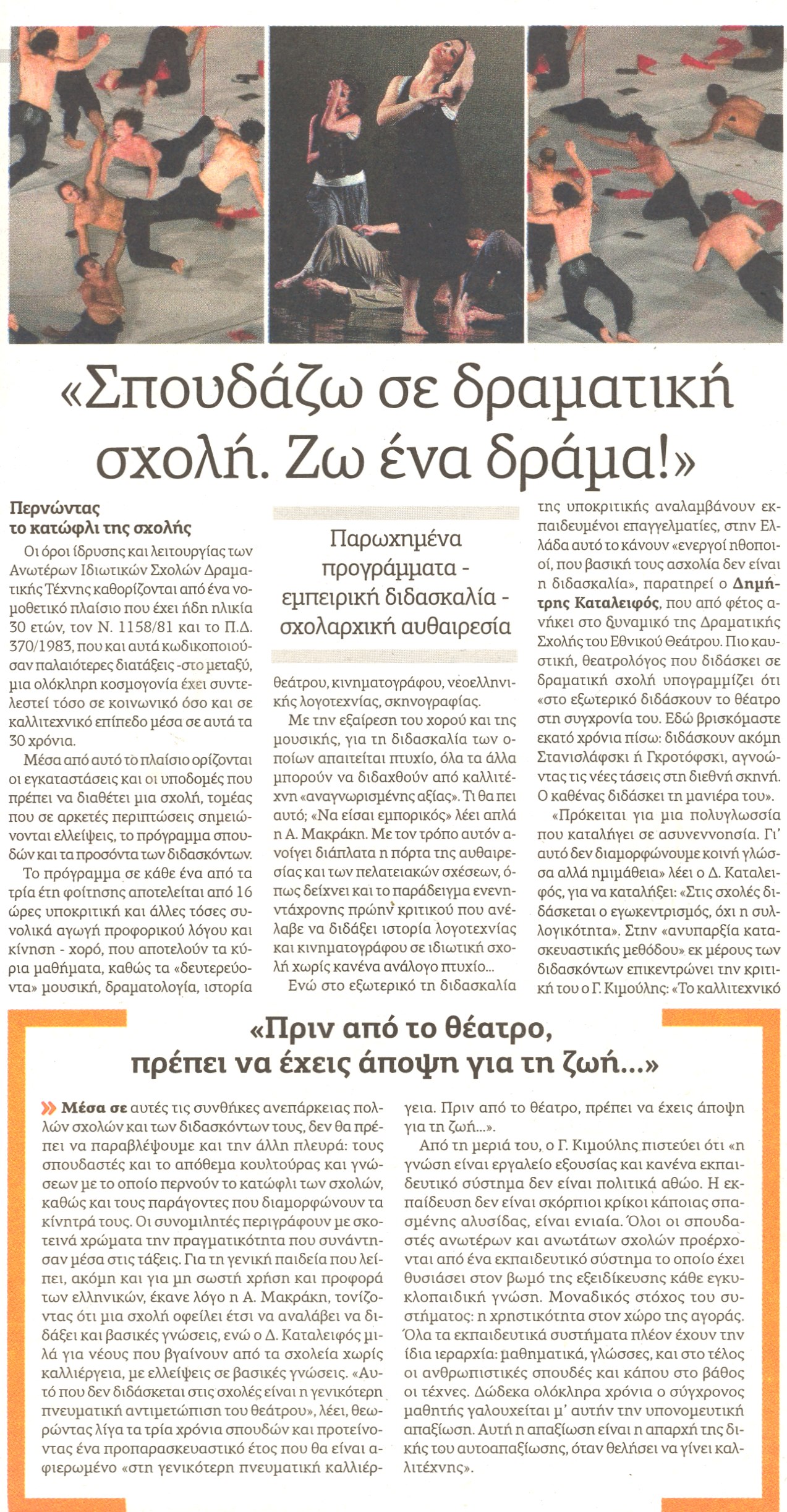 | "ΣΠΟΥΔΑΖΩ ΣΕ ΔΡΑΜΑΤΙΚΗ ΣΧΟΛΗ. ΖΩ ΕΝΑ ΔΡΑΜΑ!" ΣΕΛ 01 Δημιουργός: ΣΠΥΡΟΣ ΚΑΚΟΥΡΙΩΤΗΣ/"ΑΥΓΗ", Εκδότης: ΙΩΑΝΝΗΣ ΛΕΟΝΤΑΡΗΣ |